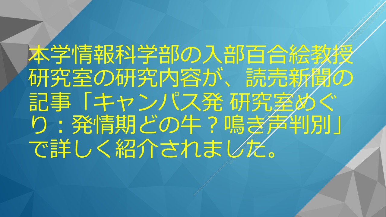 本学情報科学部の入部百合絵教授研究室の研究内容が、...