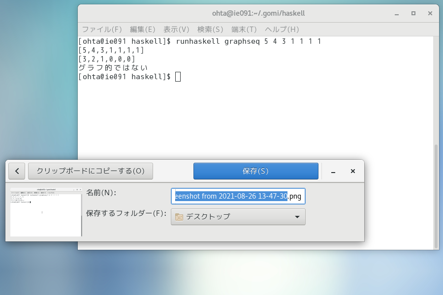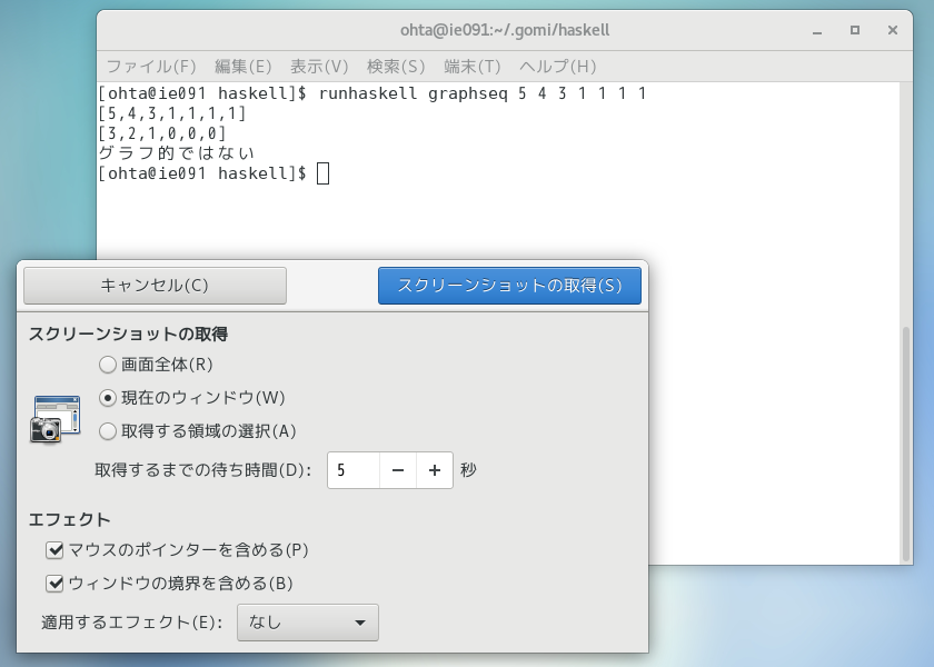 - スクリーンショットを取りたいウィンドウとは別に端末を開いて